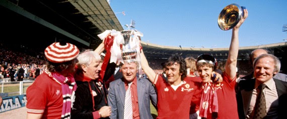 Then with the match locked at 1-1, up popped Scot Lou Macari with an effort that hit the chest of Jimmy Greenhoff, the ball span over the keeper and defender Phil Neal to win the cup, and stop Liverpool doing the treble. Of course the first team to complete such a feat was Man United in 1999.