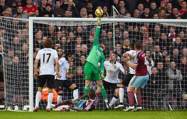 United had a lucky let-off as an effort from West Ham somehow squirmed agonisingly past the post with Valencia and de Gea hopelessly looking on from the touchline.