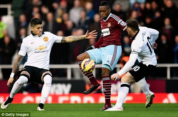 West Ham pressed forward in the first 10 minutes without really creating a clear chance as United held firm at the back with the help from the likes of Di Maria and Rooney backing up from midfield.