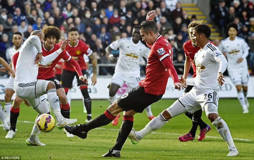 On 26 minutes Robin van Persie had a good run to the byline and managed a cross which the keeper Fabianski reached before Rooney could get a foot to it, shortly afterward the Dutchman had a run and shot on goal, unfortunately, he sliced high and wide.