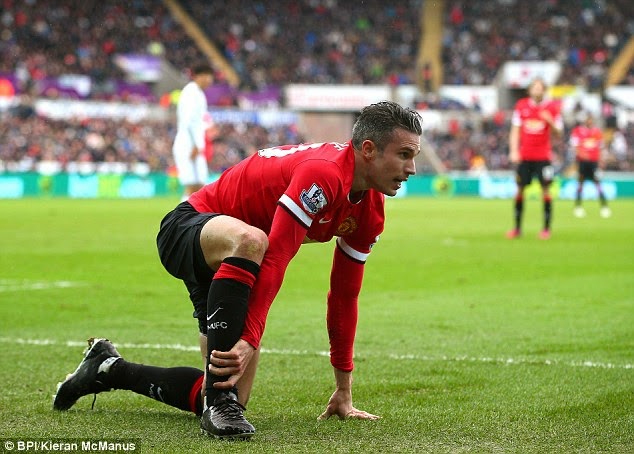 After patient passing from United, McNair won a free-kick on the right. Angel Di Maria lashed a ball into the middle which fell to van Persie, but the Dutchman fired so wildly from an acute angle that it went out for a throw-in on the other side of the pitch.