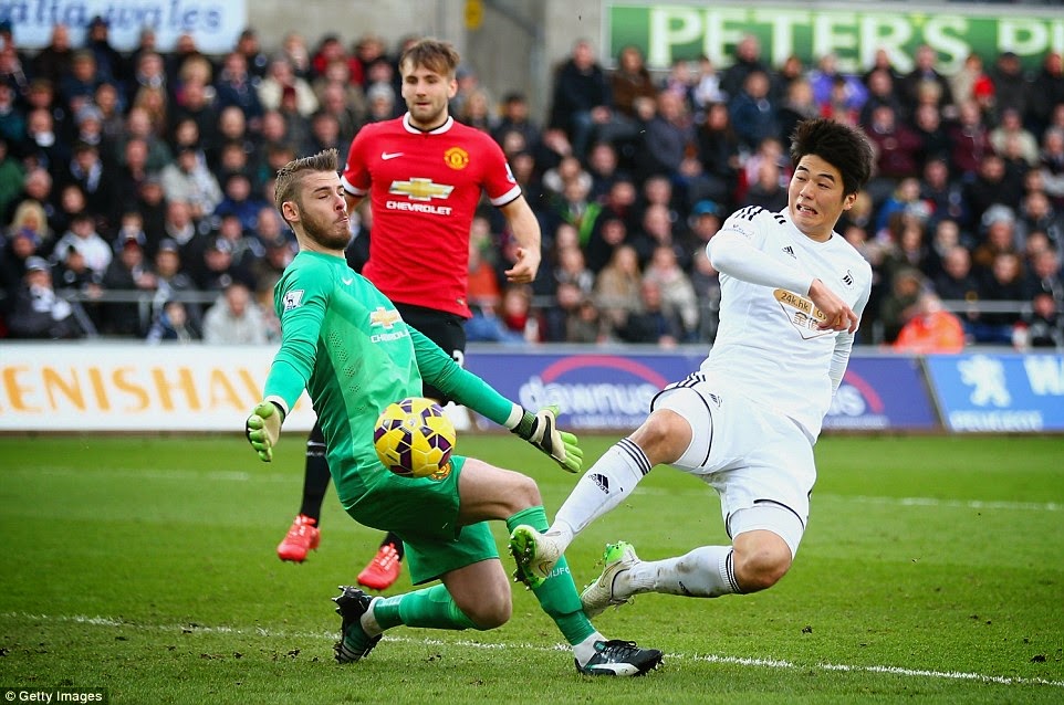Ki almost grabbed his second from an identical move to Swansea’s equaliser, but this time he was thwarted by de Gea. It was good to see Daley Blind lose his temper with Shaw as that’s exactly what the defence needed, a kick up the backside. If van Gaal was an animated character he would have surely pulled out all his hair after what he was witnessing at the back.