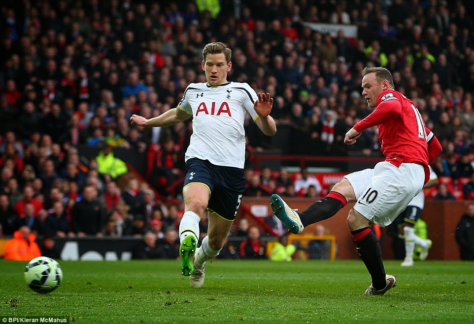 In the seventh minute, Rooney burst into the area chasing a great through ball from Young and pulled the ball back aiming for Herrera who just couldn’t get there ahead of the Spurs defender.
