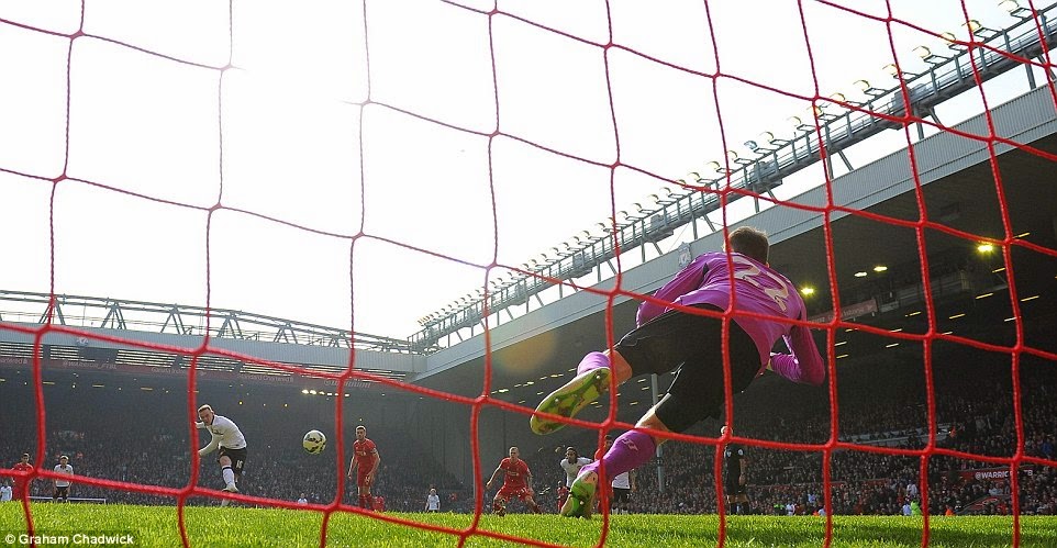 Rooney strode up and placed the ball towards the corner, but Mignolet managed to save at full stretch. Surely it wouldn’t matter as the game had entered it’s last seconds.