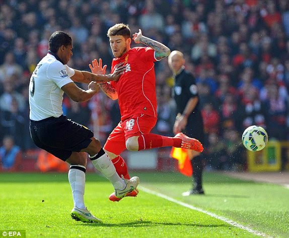 The Liverpool keeper Mignolet lost the plot around the edge of his area by nearly gifting United a free strike at goal, but he somehow got away with it.