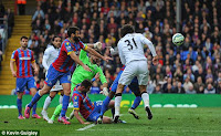 Two minutes later and Palace drew level as Smalling gave away a foul right on the edge of the penalty area.