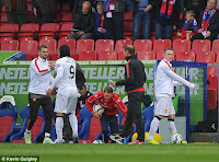 United ended the half on the attack with a corner which was well won by the impressive Ashley Young. However, It was clear to all that Rooney would not appear for the second half.