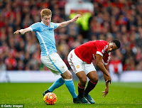 The threat of Prince Harry lookalike De Bruyne had been kept firmly in check by the superb defending of Rojo whenever the Belgian ventured into the Argentine’s area of defence.