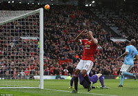Martial’s dribbling skills on the left gave the City defence trouble and Fernandinho became the first player to be cautioned after upending the young striker, although the City player should have been booked earlier for an offence that was much worse. It just goes to prove that there has been no consistency in the refereeing of matches this season.