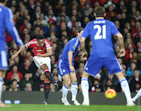 Next to come within a whisker of breaking the deadlock was Martial who, after some nifty footwork inside the area unleashed a low shot that beat keeper Courtois, but struck the bottom of the post when most in the stadium thought it was in. Including an excited Sir Alex Ferguson who was seen leaping out of his seat.