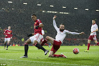 United did create a chance when Lingard placed a great ball in the area for Martial who was immediately closed down by the defence and as the ball was cleared Schweinsteiger was involved in a 50-50 collision and caught his knee, which at first looked likely to require the stretcher, but true to form he got up and ran it off so United wouldn’t be reduced to ten men for the last five minutes.