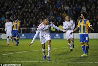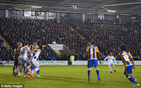 It became 2-0 to United as Shrewsbury gave away another free-kick in a dangerous position on the edge of their area and, this time, up stepped Mata to deliver a perfectly placed shot bent over the wall and into the back of the net to put the tie beyond any doubt. There was a claim that three United players were standing in an offside position between the wall and keeper as Mata struck his shot, therefore it could be claimed they were obstructing Leutwiler’s view as he was rooted to his line.