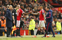 After ten minutes Rojo picked up a knock in a challenge with Welbeck and had to be replaced by yet another player making his debut Fosu-Mensah.
