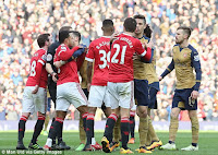 Arsenal still tried to get the game back on level terms but each time they played the ball into the area De Gea was there to tidy up. It was all frantic stuff as United frustrated the away side with keep-ball by the corner flag with Mata and Memphis combining well together.