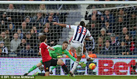 Not for the first time this season, the away fans were in fine voice, but they were silenced in the 66th minute when West Brom took the lead through Rondon, who blasted a low left-footed drive past the despairing dive of De Gea. Exactly how Rondon escaped his marker to score only Blind can answer.