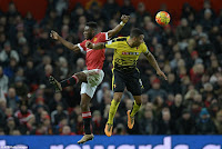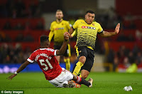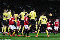 It was the away side who started the match on the front foot attacking the Stretford End as they won an early corner which United defended well. Over the next ten minutes, United found it hard to get into any attacking rhythm and Watford took advantage of that with some forays into the home penalty area. Deeney caught Rojo with a boot to the head as the ball came in from a free-kick.